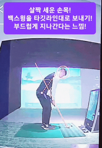 마지막으로 스윙 궤도를 타깃 라인에 맞게 일직선으로 백스윙한다는 느낌으로 보내주고