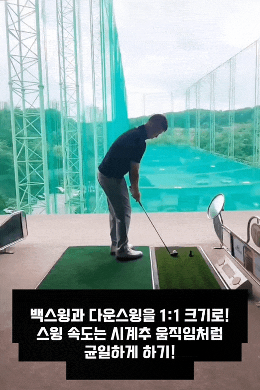 남은 거리가 가까울수록 전체 스윙이 작아야 하고 멀수록 커져야 하는 것인데 모든 백스윙과 포워드스윙의 자세 크기를 1:1로 하고 스윙의 속도는 마치 시계추의 움직임처럼 균일하게 하여 샷을 해야 합니다!
