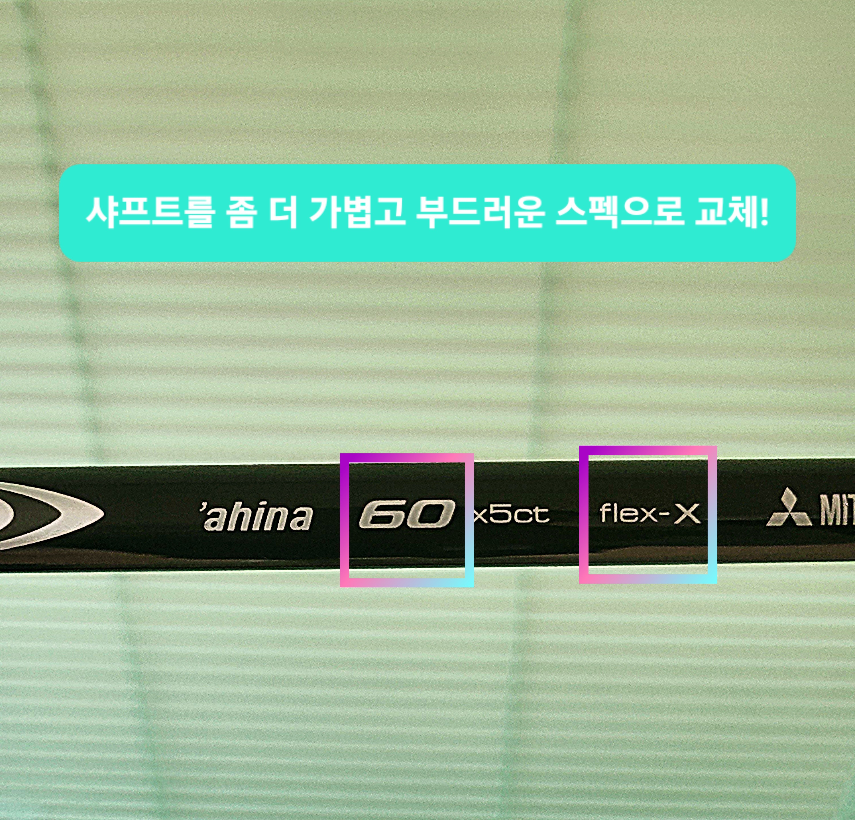 그리고 위 헤드 로프트 선택과 같은 맥락으로 샤프트 강도를 좀 더 가볍고 부드러운 플렉스로