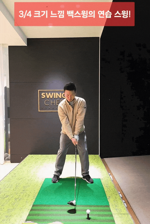 백스윙 크기를 3/4 정도 크기의 컨트롤 느낌으로 연습 스윙을 하는 것입니다!