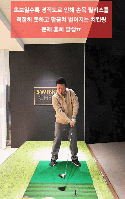 긴장감을 풀고 최대한 클럽 헤드의 휘두름을 느끼려는 것이 중요합니다!